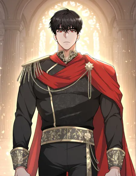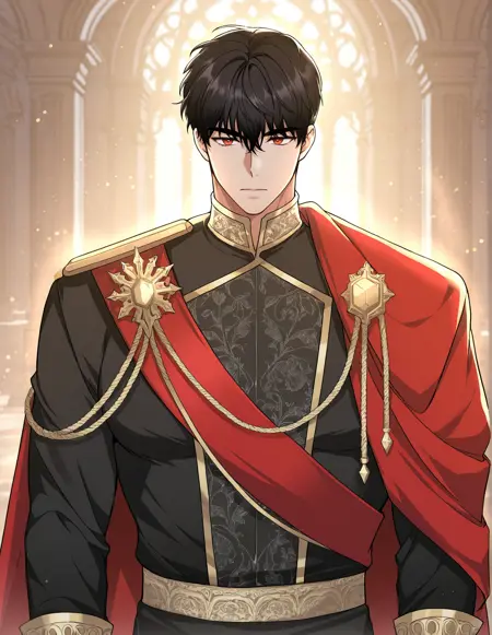 1boy, Karligo Edmund, 검은 머리, 단발, 붉은 눈