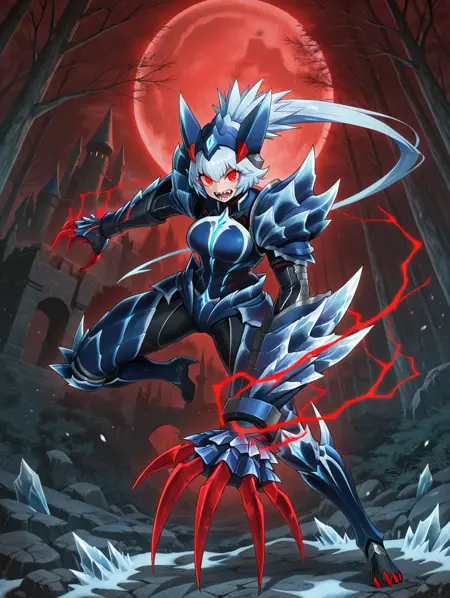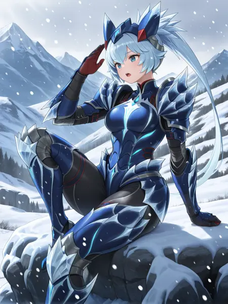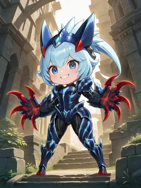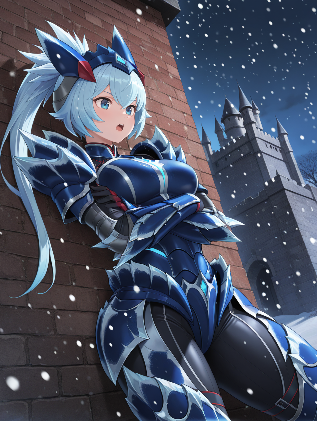 Tags (clothes): lunagaron armor, blue helmet, blue pauldrons, blue breastplate, blue gauntlets, black bodysuit, blue faulds, blue clawed boots