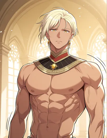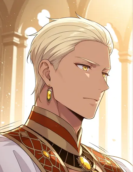 1boy, Halid Sirim Hartmann, blonde hair, short hair, yellow eyes