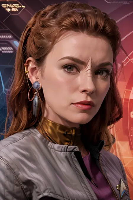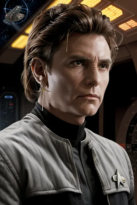 Tips: add military uniform, badge to negative prompt to pull away from starfleet uniforms. Also setting things "outdoors" and specifying clothing helps.