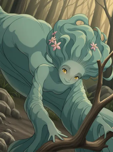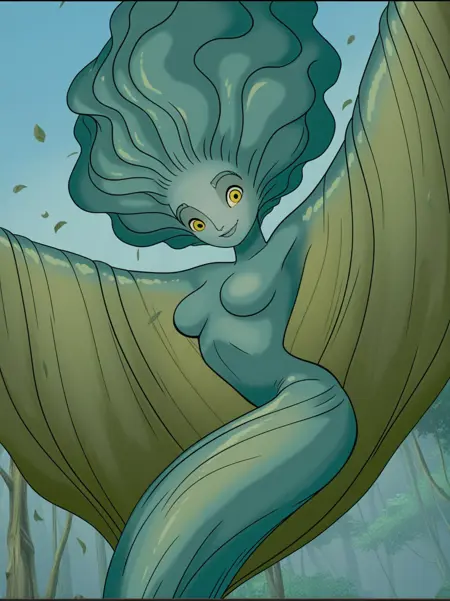 附加词:"黄色眼睛、绿色皮肤、植物女孩、怪物女孩、彩色皮肤"