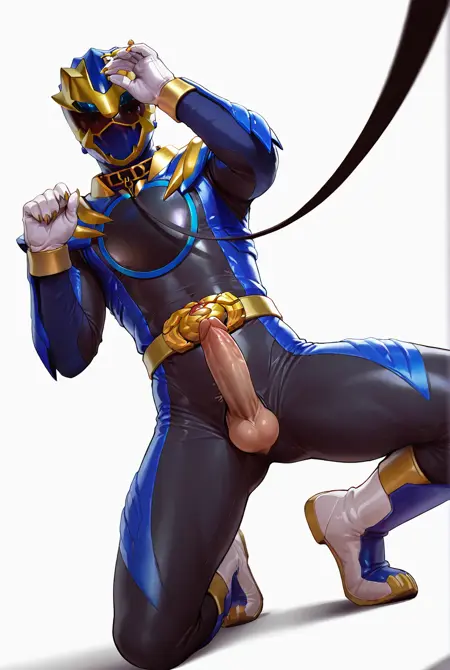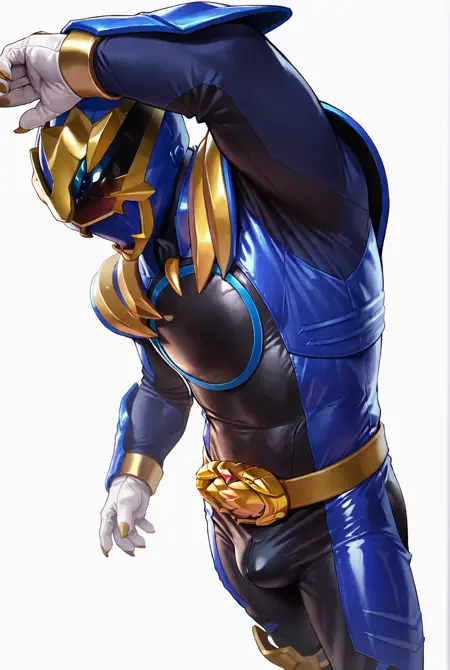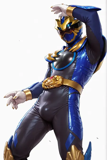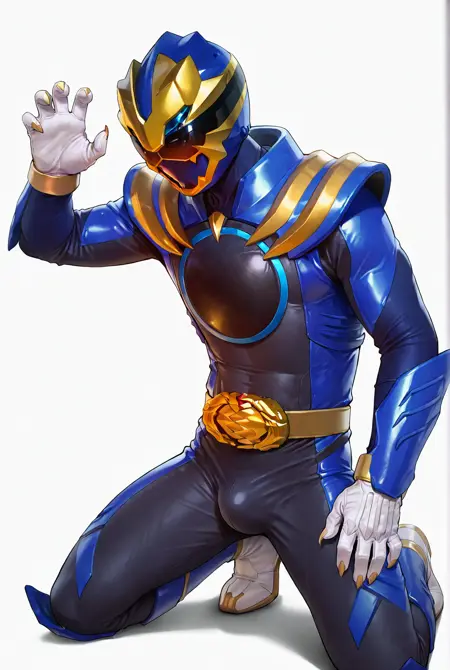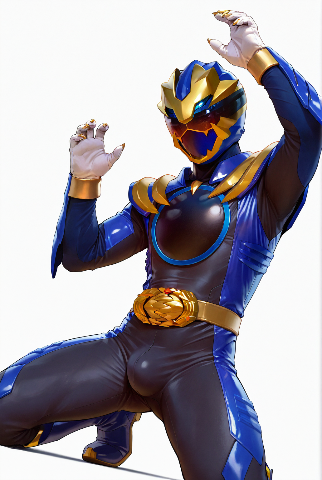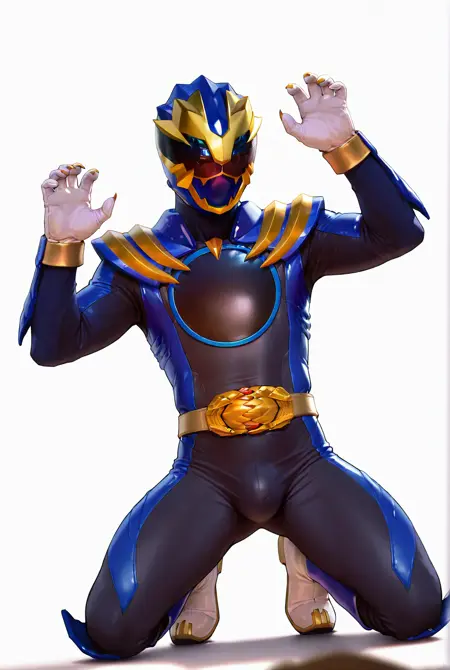 gozyu tyranno, helmet, bodysuit, tokusatsu, belt, armor, gloves, white gloves, claws, boots
