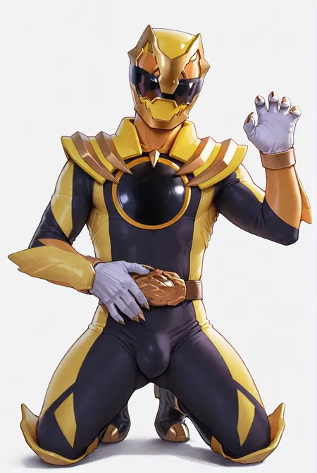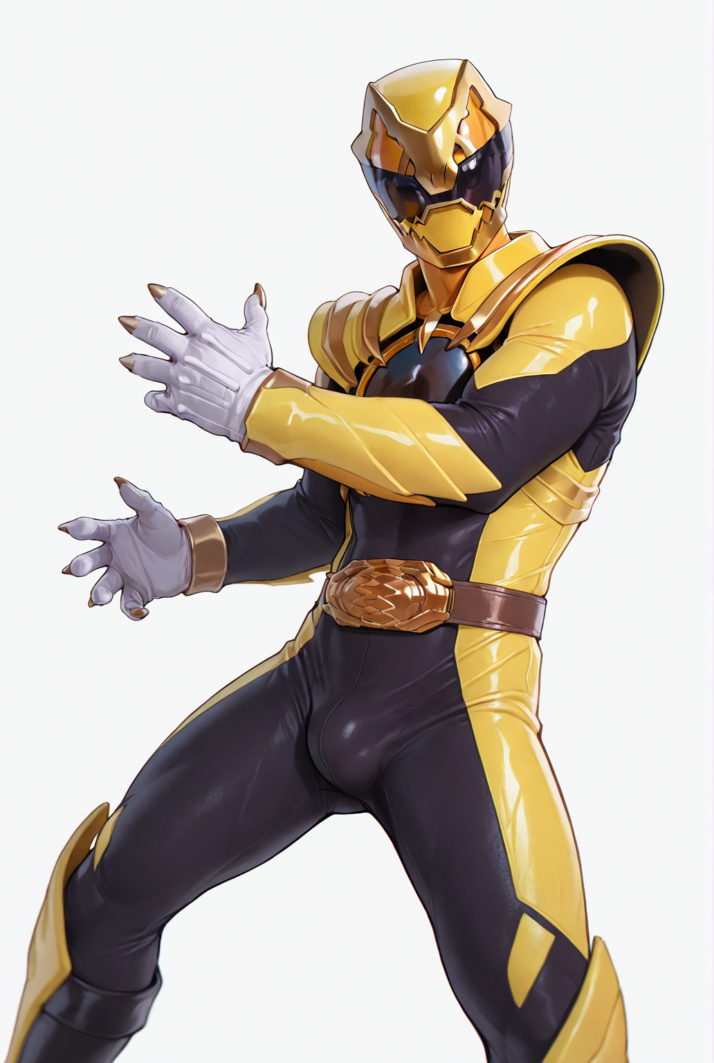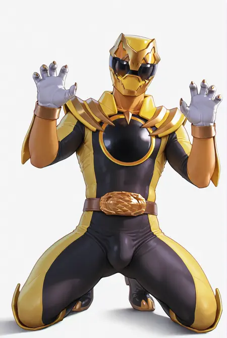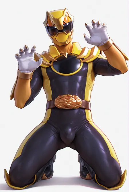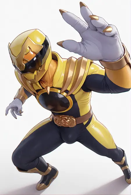 gozyu tyranno, helmet, bodysuit, tokusatsu, belt, armor, gloves, white gloves, claws, boots