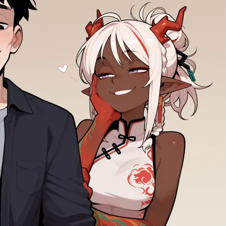 在标记情侣时,使用“dark skin”来强制指定女性的肤色,同时保持男性为白色肤色。使用这种通过标签构建的原创角色,我成功率达到至少 98%;对于 Illustrious 中已知的角色,成功率仍能达到 90–95%。