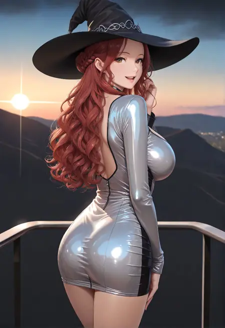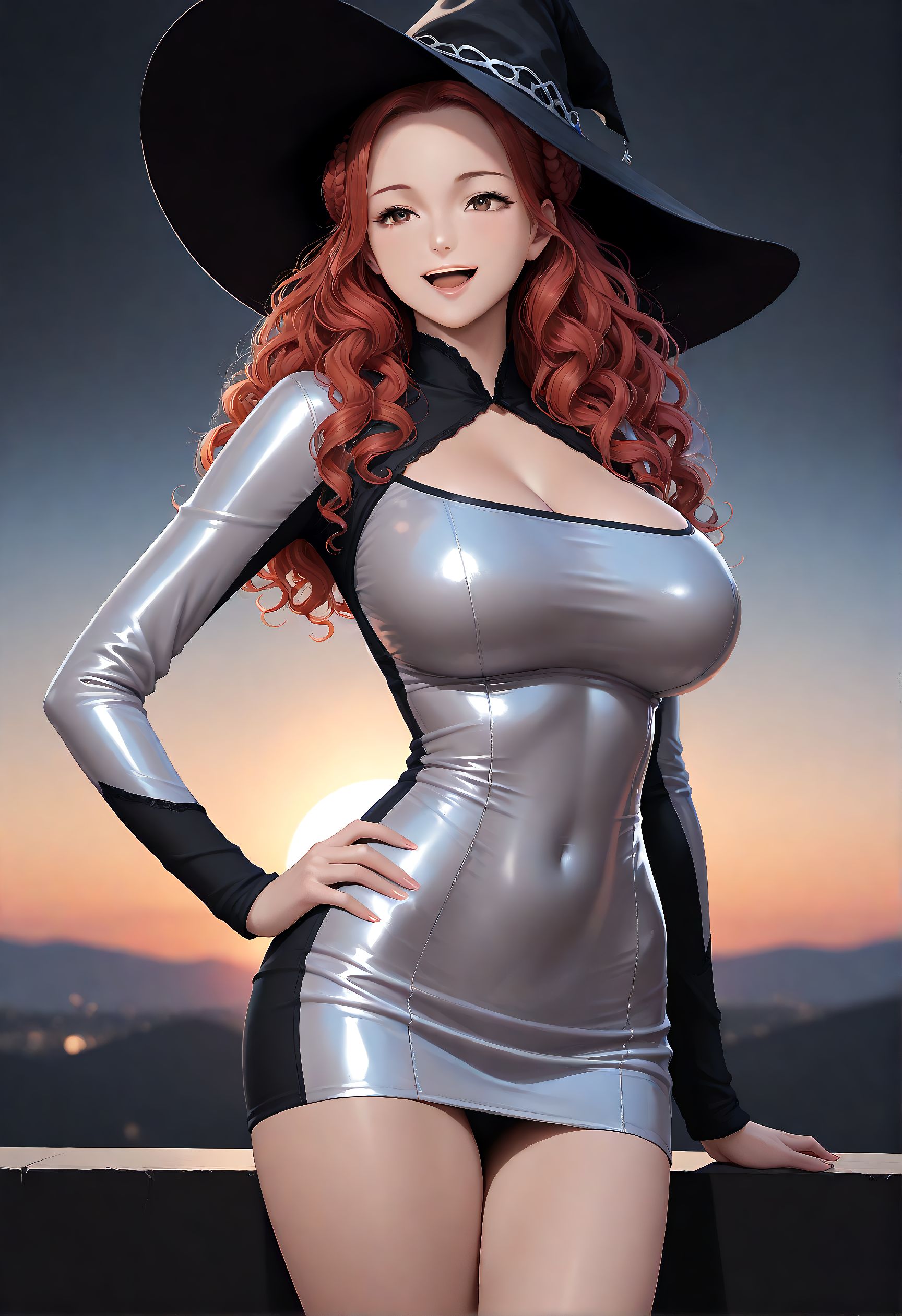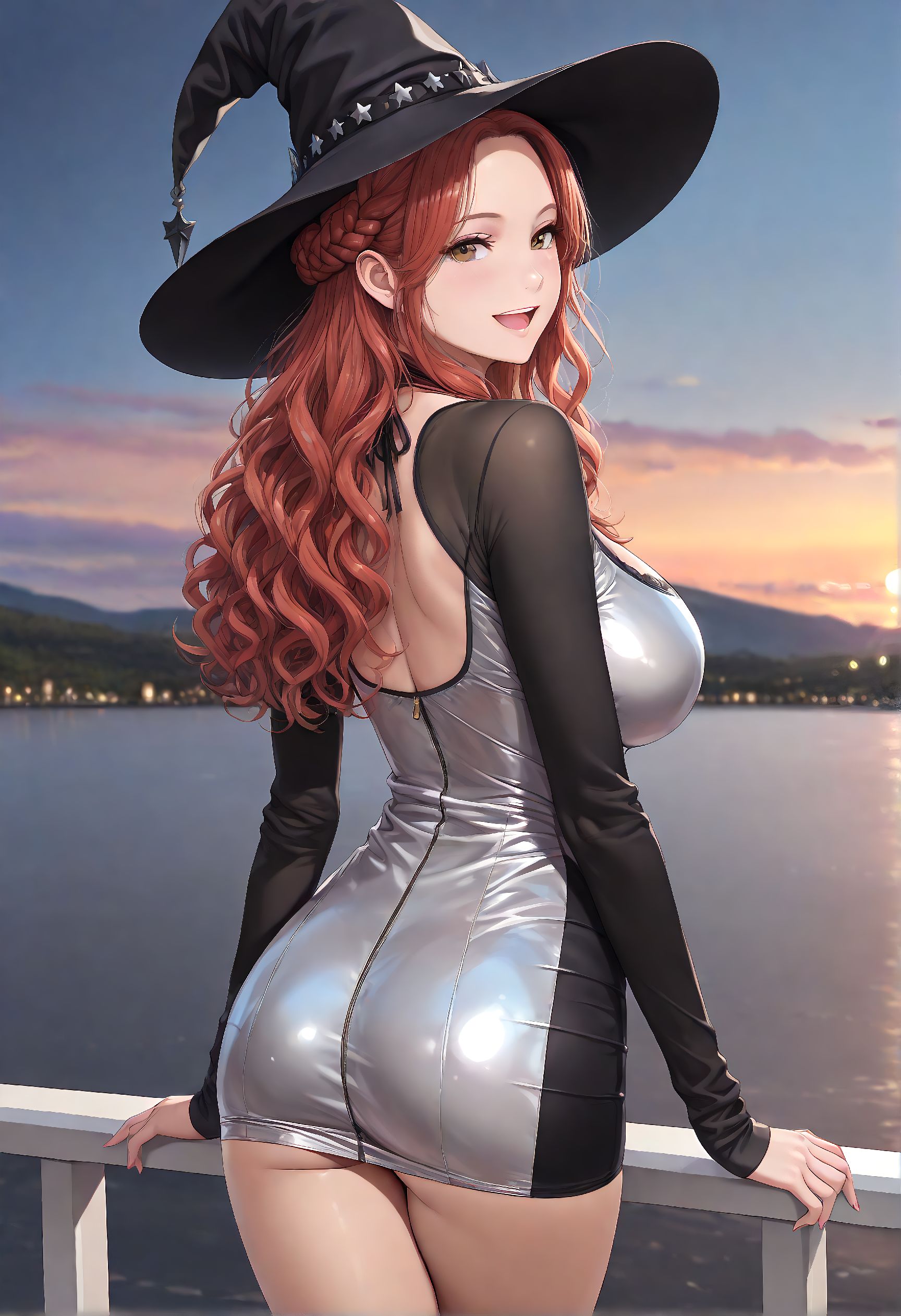 • 目标是生成一件带有侧边拼接的紧身连衣裙。女巫帽和过膝袜为可选。
