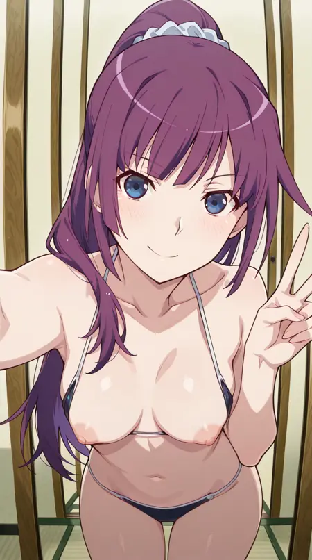lora:random-nsfw-poses-v1-illustriousxl-lora-nochekaiser:1, 随机成人姿势,单人,脸红,手持,肚脐,闭嘴,站立,乳头,内衣,锁骨,内裤,裸体,阴部,室内,腹部,完全裸体,无审查,蝴蝶结内裤,维纳斯裂,手持衣物,卧室,未穿过的内裤,手持内衣,手持内裤,低头看