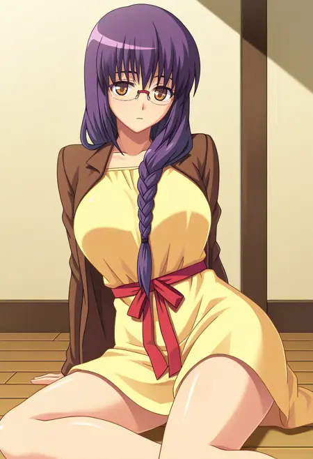 amaneww, 갈색 눈, 보라색 머리, 긴 머리, 한쪽 땋은 머리, 어깨에 걸린 머리, 안경, 빨간 테 안경, 테 없는 안경,
