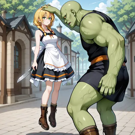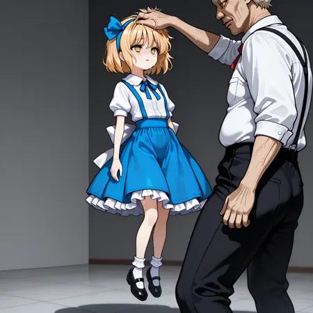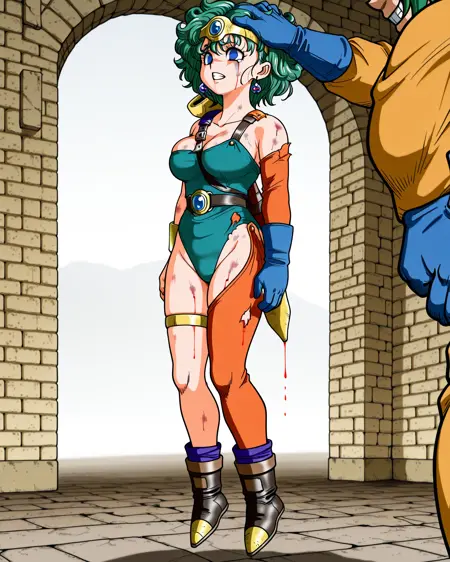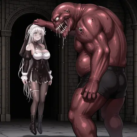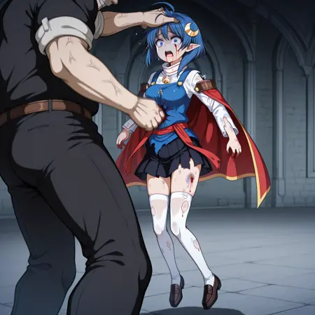 这个LoRA用于创建角色被一只手抓住头部或头发并悬在空中的构图。