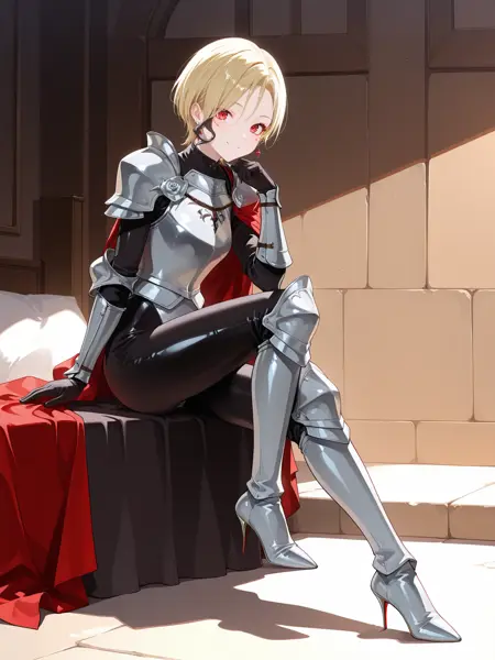 Don_giovanni, short hair, blonde hair, red eyes, eye mark, earrings,