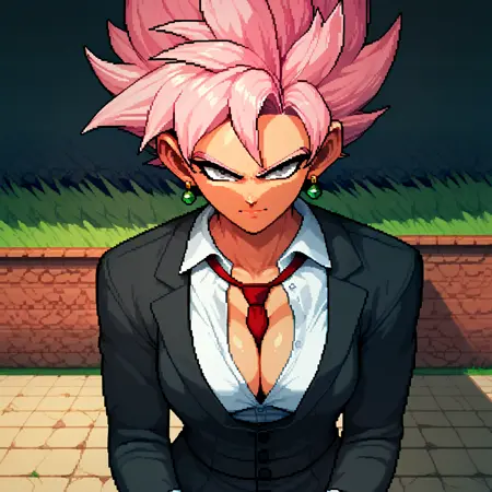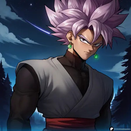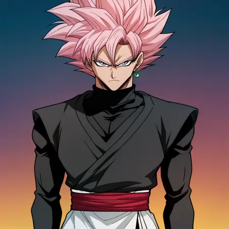- 以下のタグを使用してください:とげとげした髪、ピンクの髪、ピンクの目、スーパーサイヤ人、片耳のイヤリング、道着
