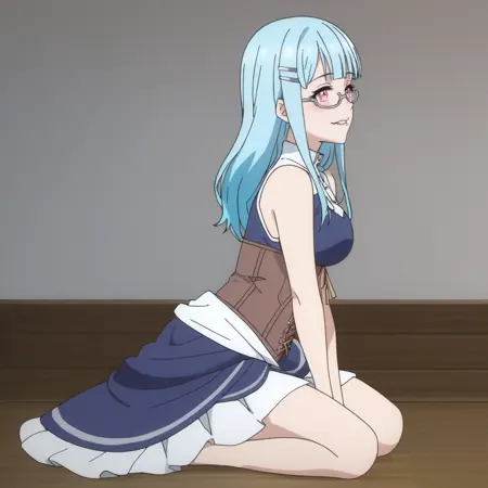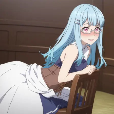 SRASilica, 긴 머리, 안경, 머리 장식, 헤어클립, 분홍색 눈, 파란색 머리, 반프레임 안경, 회색 프레임 안경, 둔한 앞머리, 옆머리