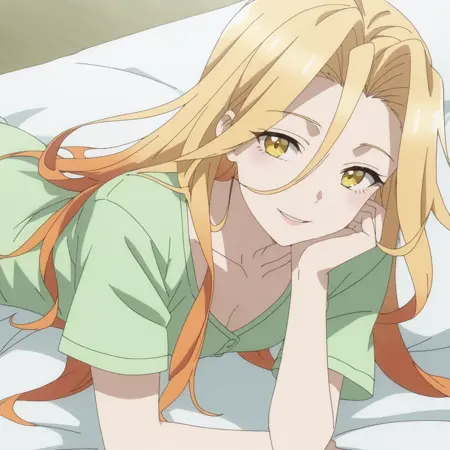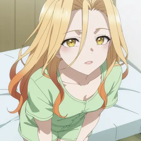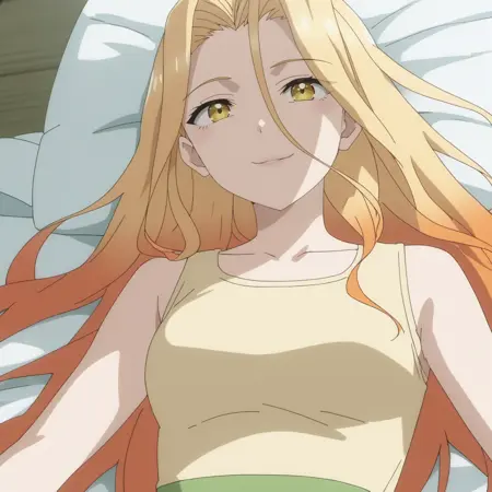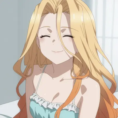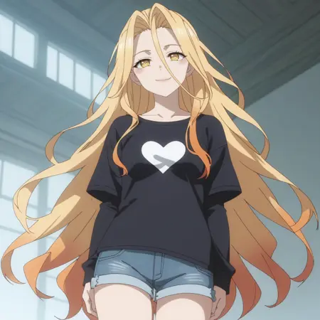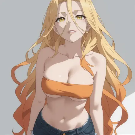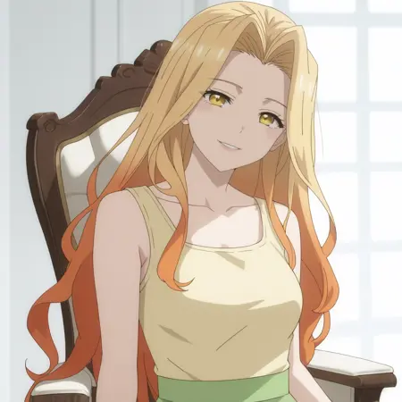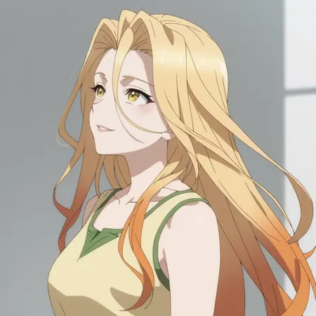 SRASilvie、黄色い目、多色の髪、グラデーション髪、金色の髪、オレンジ色の髪、非常に長い髪、目と目の間の髪