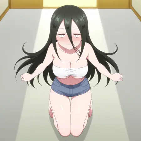 ANAMidori、黒髪、長い髪、非常に長い髪、前髪、目の間の髪、