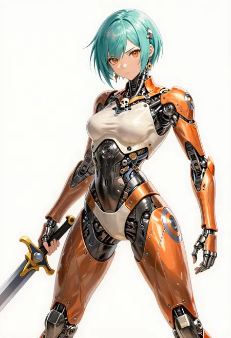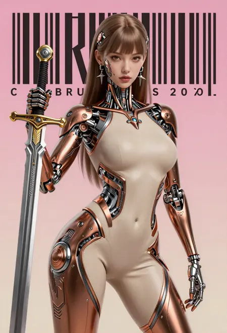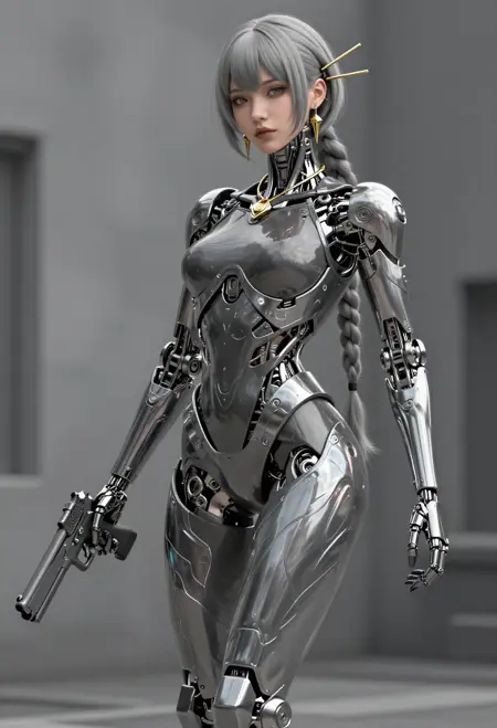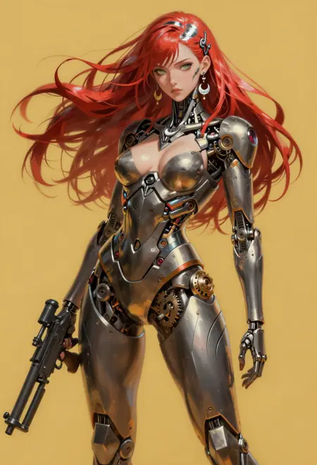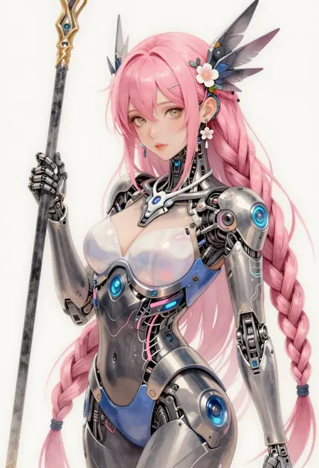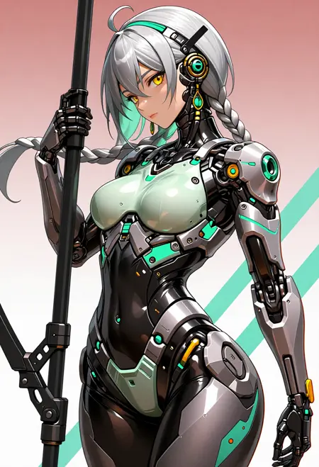 mechabare, mechanical parts, solo, science fiction,sf, 1girl, cyborg, { curvy, sexy | fighting stance, } { holding weapon, holding {sword,| polearm,| knife,| rifle,| axe,| pistol} {cyborg,mechanical arms, mechanical eyes, {short hair,| long hair, | braid, | bob cut,| very long hair, } , face focus | exoskeleton, breasts, mechanical arms, mechanical legs, face_focus | mecha robot, holding weapon, | non-humanoid robot,} | { no humans, vehicle focus,{ military vehicle, | sports car | car | gun | plan |ship } }, }{1-3$$ Oil paint|Watercolor|Acrylic|Gouache|Tempera|Pastel|Charcoal|Ink|Colored pencil|Graphite| anime screenshot, | western comics \(style\), | manga style }, {multiple-tonbackground |simple background | gradient background | indoors, | outdoors, }, ,dynamic visul, limited palette theme,matel color trim,{ gradient colors, | limited palette, | vivid colors, | pastel colors, | two-tone colored } , { upper body, | full body, | Wide shot|Long shot|Full body|Three-quarter shot|Mid shot|Upper body|Portrait|Close-up|Extreme close-up}, {1-2$$ barcode tattoo, | national mark| floral print, | barcode tattoo,|gears| energy pipe,| glowing leds| mechanical wings, | high heels,| speed lines,}