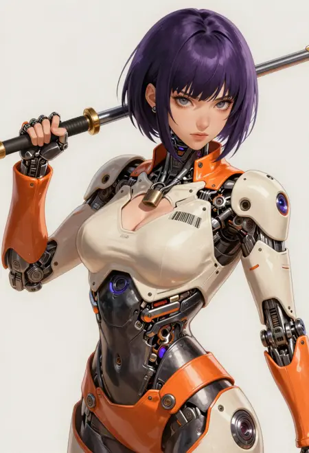 1girl, cyborg, { curvy, sexy | fighting stance, } { holding weapon, holding {sword,| polearm,| knife,| rifle,| axe,| pistol} {cyborg,mechanical arms, mechanical eyes, {short hair,| long hair, | braid, | bob cut,| very long hair, } , face focus | exoskeleton, breasts, mechanical arms, mechanical legs, face_focus | mecha robot, holding weapon, |}, }{1-3$$ Oil paint|Watercolor|Acrylic|Gouache|Tempera|Pastel|Charcoal|Ink|Colored pencil|Graphite| anime screenshot, | western comics \(style\), | manga style }, {multiple-tonbackground |simple background | gradient background | indoors, | outdoors, }
