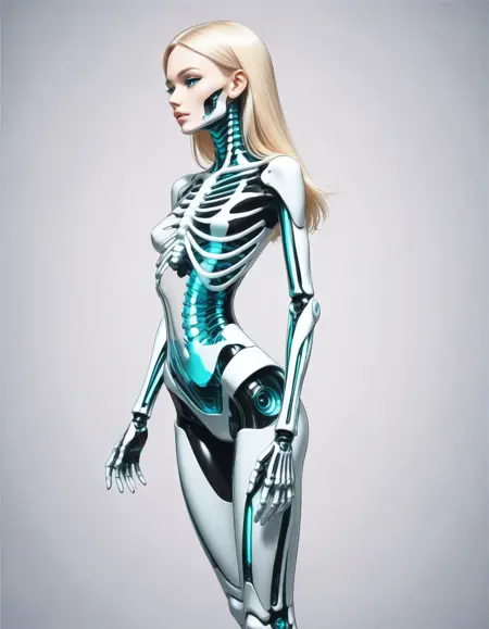see-through-body, transparent skin, machinery skeleton, cyborg, mechanical parts, science fiction,