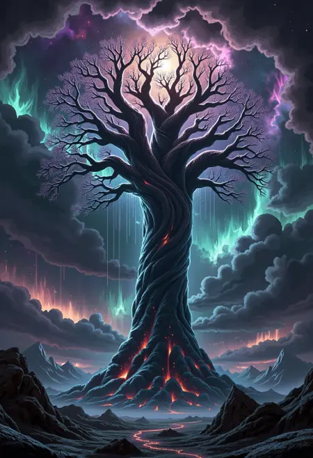 “生命之树”是一个在许多文化中都存在的概念,象征着天堂、大地与冥界之间的神圣联系。最著名的例子是北欧的尤格德拉希尔树——一棵巨大的白蜡树,连接着宇宙的九个领域。