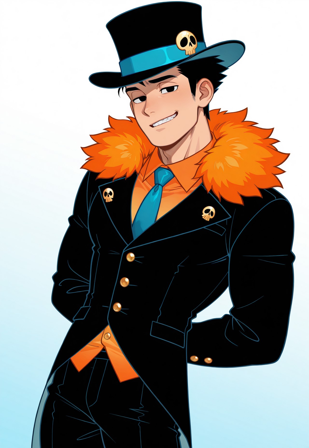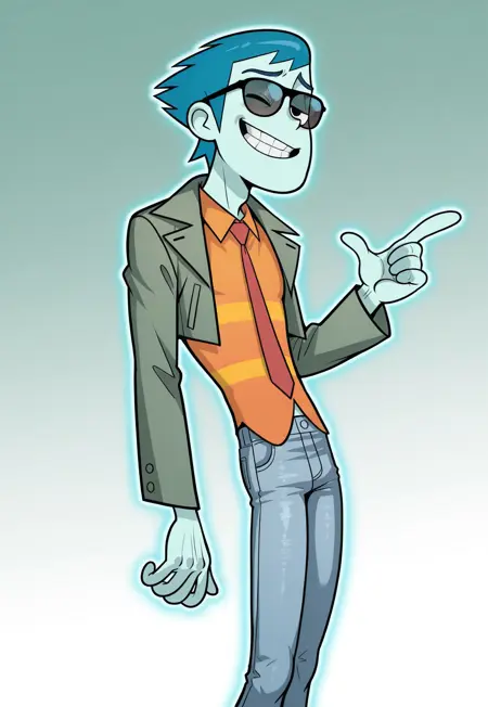 | 训练词汇 | bjc0br4, blue hair, spiky hair, slicked back hair, black eyes, male ghost, glowing outline, translucent body, light blue skin,已复制! olive green jacket, open jacket, two-tone orange shirt, red necktie, slim fit jeans, red sneakers,已复制! hbjc0br4, black hair, spiky hair, slicked back hair, black eyes,已复制! black top hat, skull emblem, blue hatband, black jacket, golden buttons, fluffy orange fur collar, orange shirt, blue tie, black pants已复制! |
