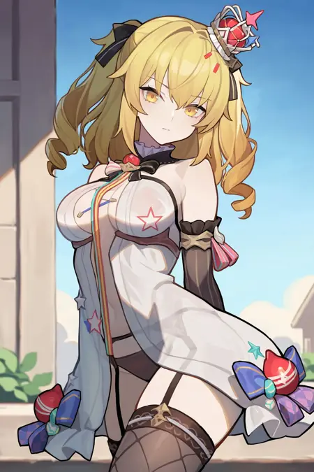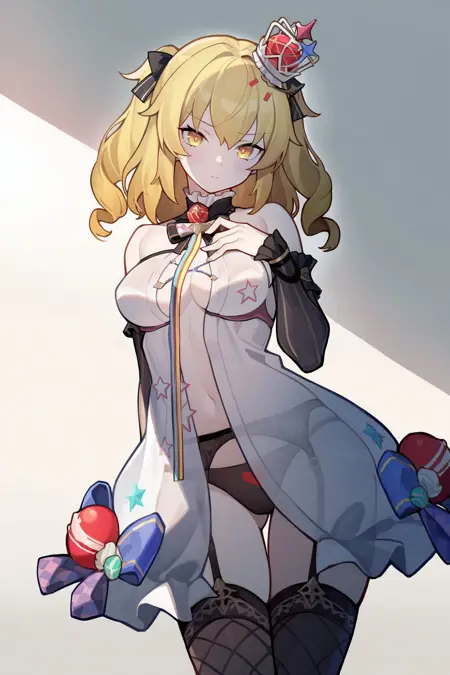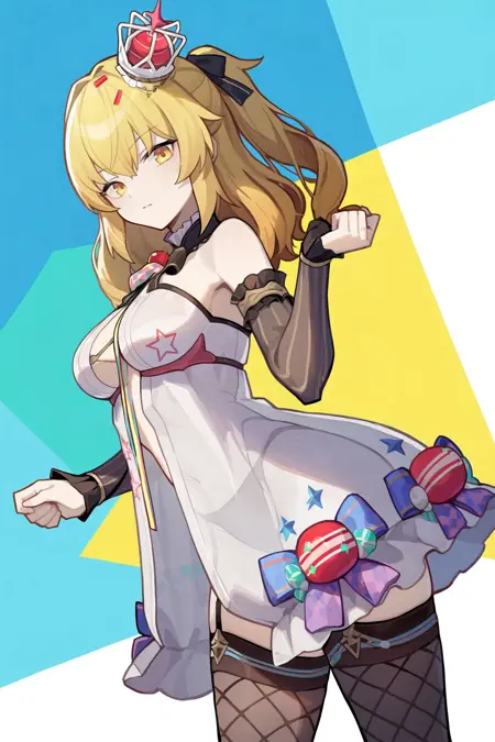 sb-fenny-sugarqueen, mini crown, yellow eyes, medium breasts, see-through, crown, thighhighs