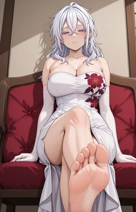 RikkaLUCV1, white hair, long hair, hair between eyes, purple eyes,