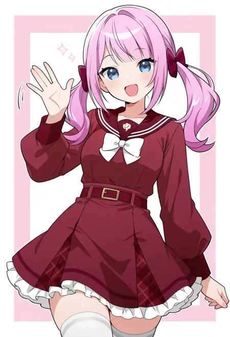red sailor collar,red serafuku,kanba girls high school uniform,frilled dress,white bowtie,red belt,white thighhighs,