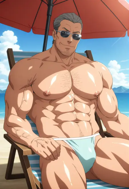 short hair,grey hair,hair slicked back,brown eyes,long sideburns,beard stubble,right arm tattoo,red tattoo