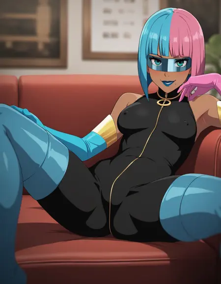 주로 바 전투 장면과 그녀가 메카맨의 정체를 추측하는 장면의 이미지를 사용합니다. 새로운 배경을 지정하지 않으면 그녀의 에코가 배경에 나타납니다. 시야경 뒤에 그녀의 눈을 가리고 싶다면 프롬프트에 "no eyes"를 추가하세요.