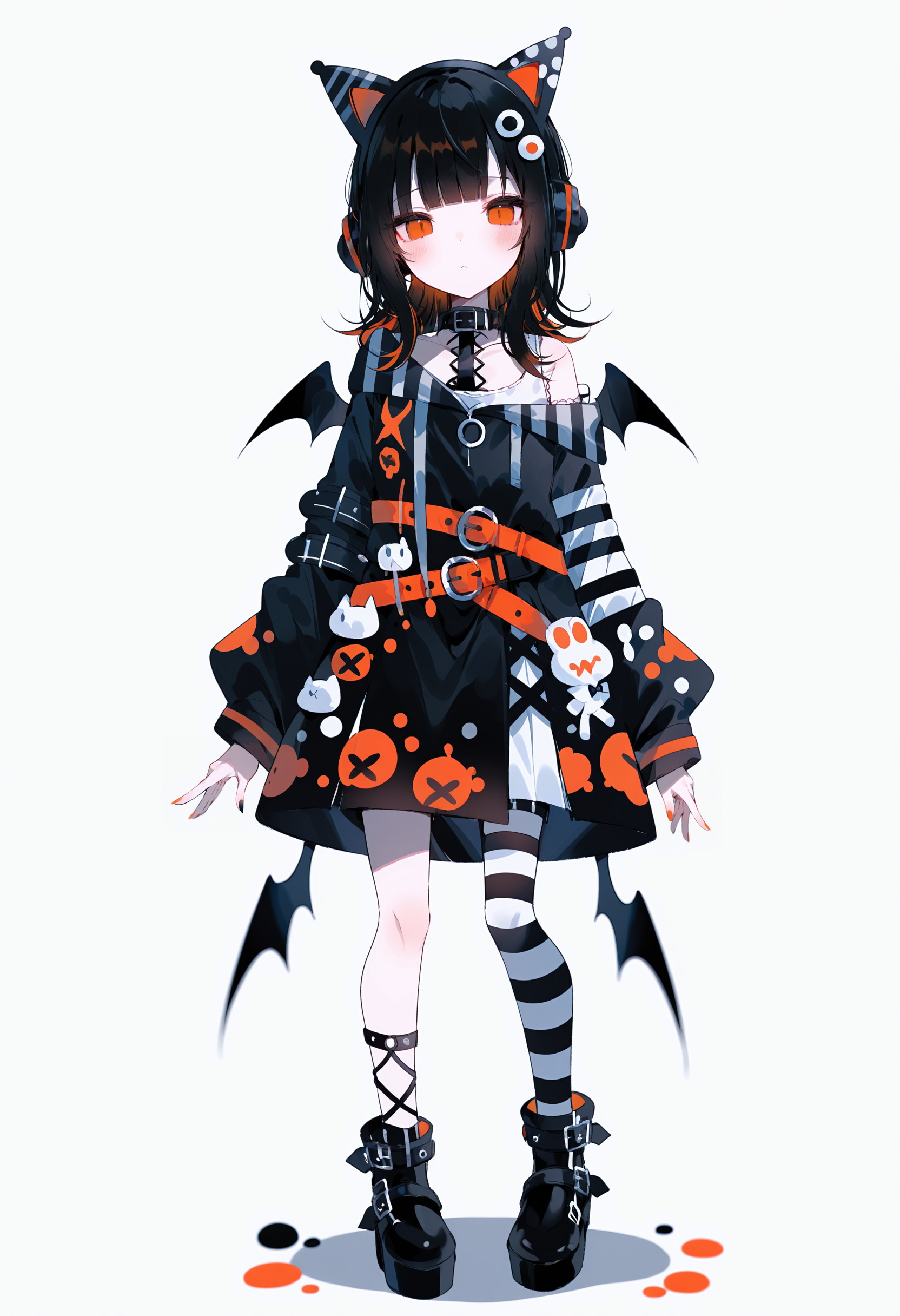 沢渡ココ:sawatari coco,asymmetrical legwear,bat wings,black shoes,blunt bangs,magical girl