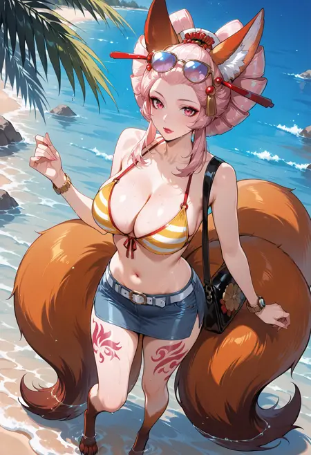 | 训练词汇 | 1girl,pink eyes,fox ears,animal ears,red eyes,black hair,long hair,lipstick,makeup,hair stick,hair ornament已复制! tail,breasts,multiple tails,japanese clothes,fox tail,tattoo,sharp fingernails,kimono,claws,sash,red nails,obi,leg tattoo,fox girl,bare shoulders,large breasts,kitsune,long fingernails,monster girl,wide sleeves,side slit,medium breasts,floral print,animal feet,long sleeves,off shoulder,kyuubi,animal hands,black kimono,detached sleeves已复制! 1girl,red eyes,two-tone hair,makeup,animal ears,short hair,red hair,white hair,black hair,gradient hair,multicolored hair,streaked hair,bangs,hair stick,hair ornament,pale skin已复制! tail,multiple tails,breasts,tattoo,fox tail,fox ears,large breasts,midriff,leg tattoo,stomach tattoo,full-body tattoo,fox girl,medium breasts,fur,animal ear fluff,monster girl已复制! |