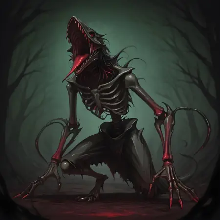 骨格的、怪物的、または悪魔的な特徴を追加します——延長された四肢、鋭い爪、ねじれた解剖学的構造。