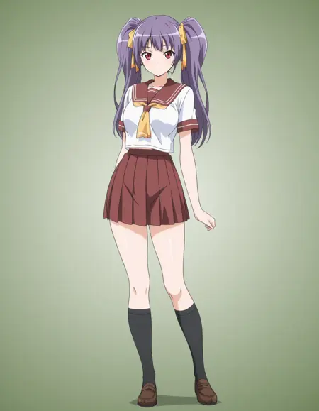 mai_wana,mai_sakuyaw,long_hair,twintails,purple_hair,red_eyes,yellow_ribbon,school_uniform,serafuku