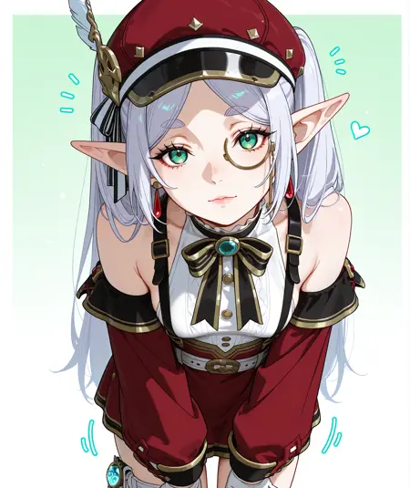 hat, red headwear, cabbie hat, hat feather, monocle,