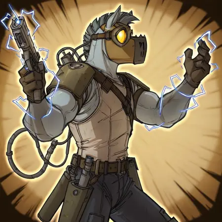 ゴーグル, マスク, 武器, 剣, アーマー, ヘルメット, 肩アーマー, 胸当て, 黄色のゴーグル,