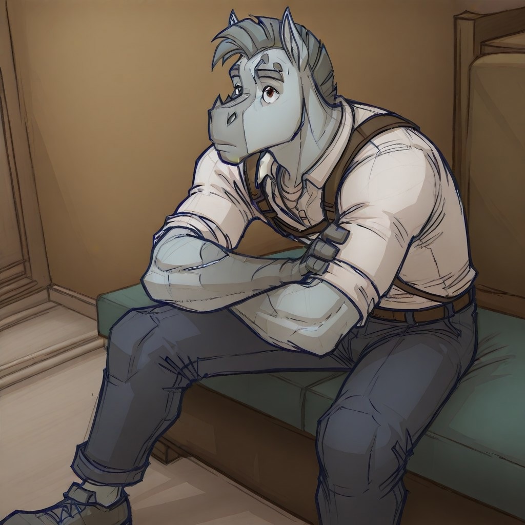 parcyx, 1boy, ファリー, ファリー男性, 動物の耳, 馬の耳, 男性焦点, シングル, 短い髪, 青い髪,