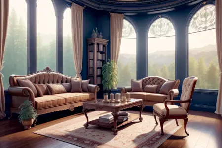 [당신의 미디엄], 마법 같은 인테리어 스타일, [대상], [특징들]