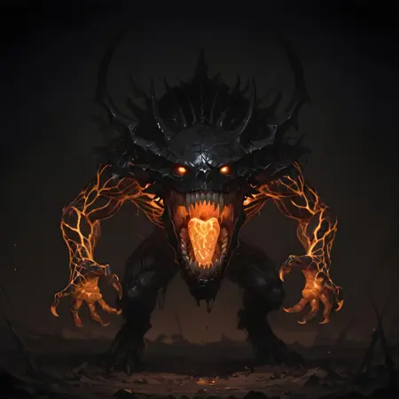 溶岩のひび割れ、黒曜石のような皮膚、輝く内部など、細部のテクスチャ表現