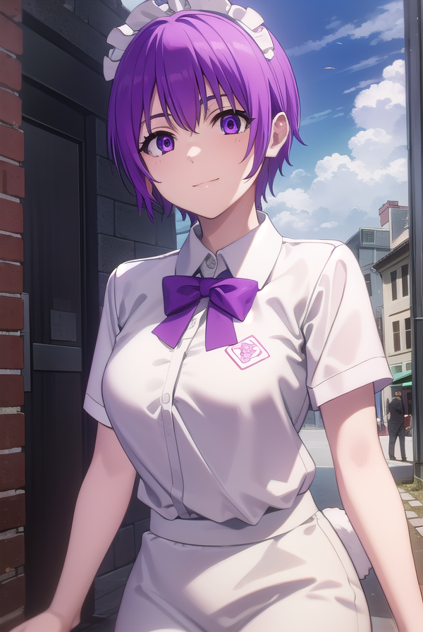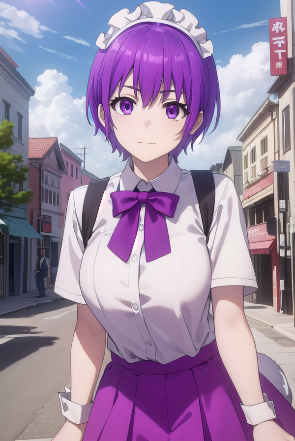 naruha sakuragi, 단발, (보라색 눈:1.1), 보라색 머리,