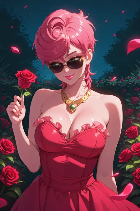 トリガー語は "jjtsh" であり、"ピンクの髪、短髪、緑の目、唇、ピンクのリップ" が必要です。