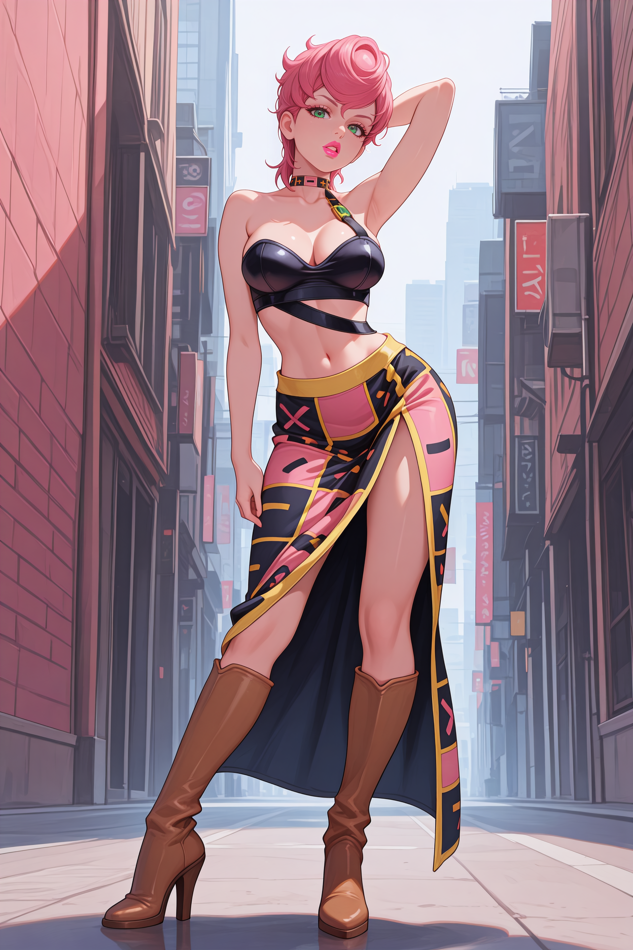 ジョジョの奇妙な冒険:ゴールデン・ウォンド/ヴェントオーレオのトリッシュ・ウナ。Illustrious-XL v0.1 でトレーニング済み。強度0.8-1.0でテスト済み。