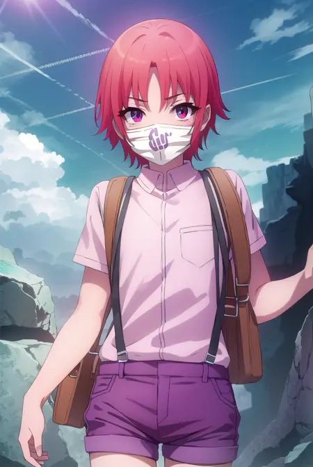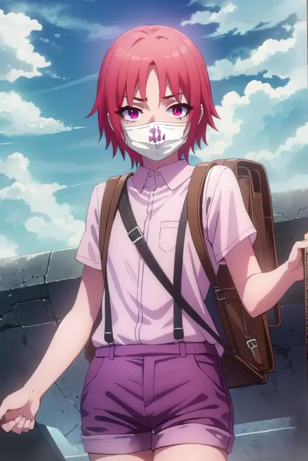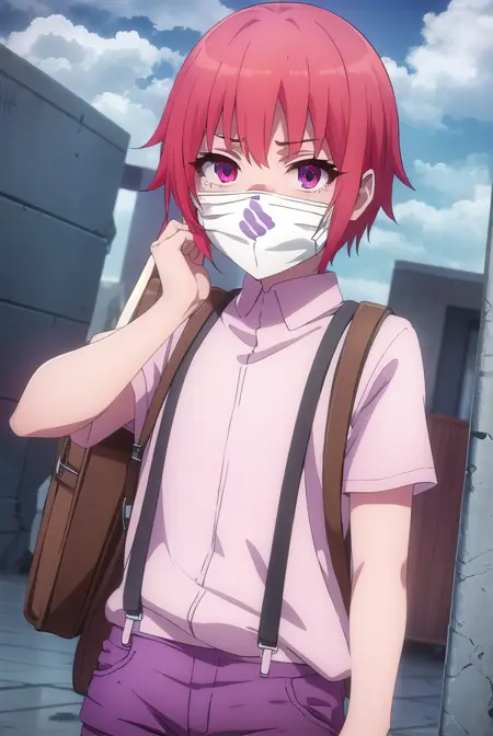 rita iizumi,短发,(红眼:1.3),粉发,面具,口罩,外科口罩,