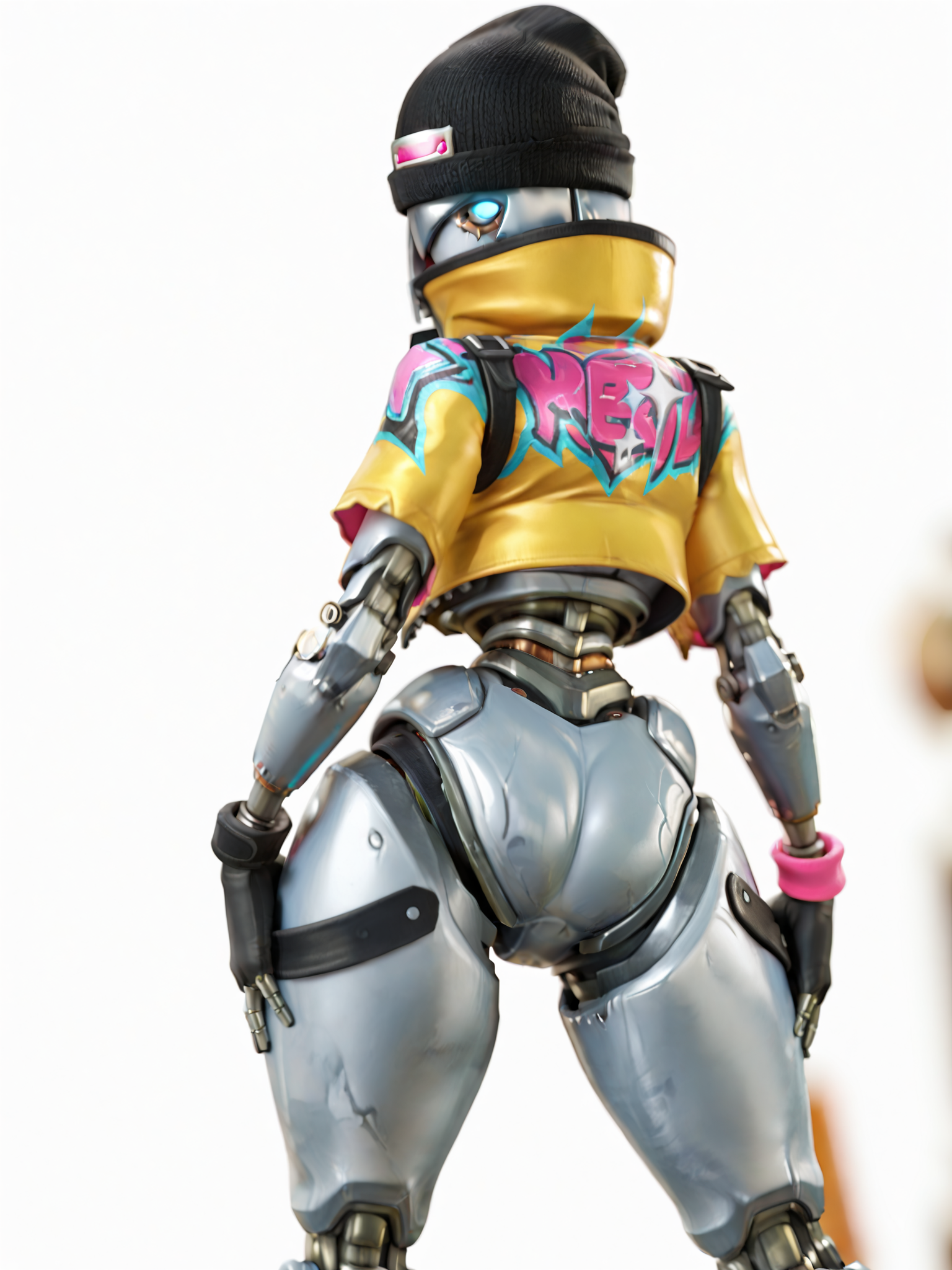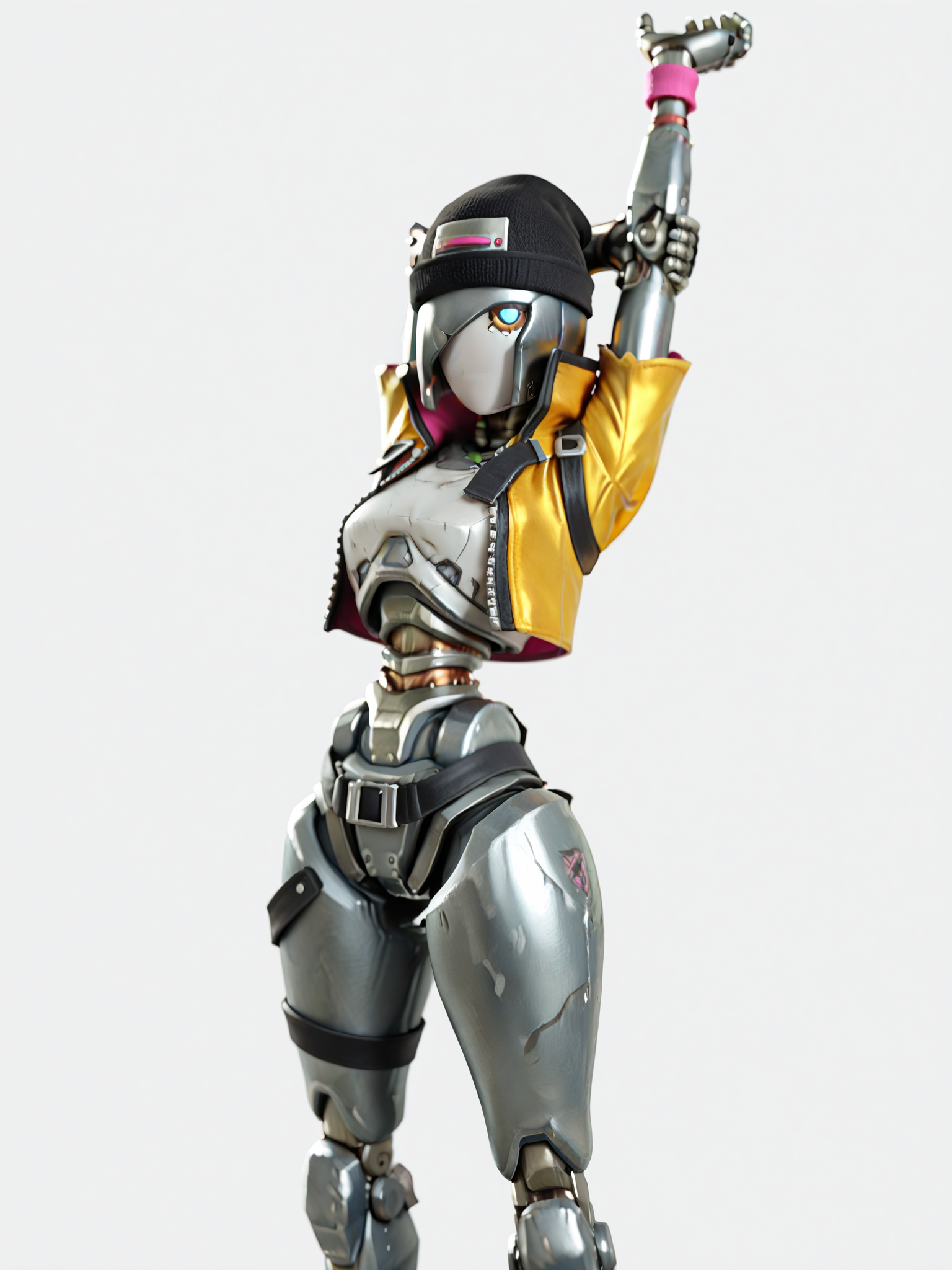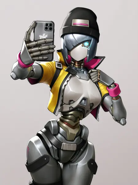 캐릭터 프롬프트: (RebelFN:1.3), 로봇 소녀, 로봇, 입 없음, 무표정한 얼굴, 평평한 얼굴, 얼굴 없음, 입 없음, 기계식 관절, 로봇 손가락, 두꺼운 허벅지, (파란 눈:1.0), 금속 머리카락, 눈 위의 머리카락, 비대칭 디자인, (빛나는 눈:0.8),