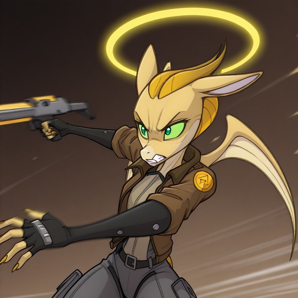 tia, 1girl, solo, furry female, animal ears, furry, green eyes, horns, wings, tail,