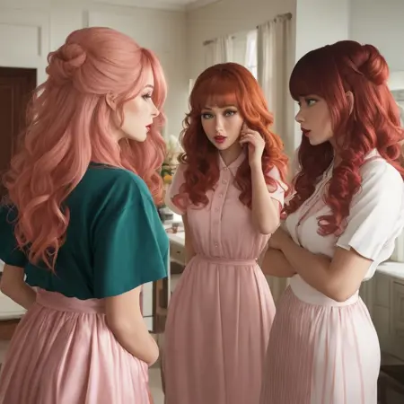 - 컴퓨터 애니메이션, 세밀한 세부 묘사, 브뤼겔, 민감한 관찰력, 보완 색조 대비, T자형 구성, 테네브리즘, 물, 왜곡, 영감 있는, 키 큰 편, 날씬한, 심장형 얼굴, 검은 피부, 플래티넘빛 갈색 머리카락, 예약색 눈, 짧은 코, 부푼 입술, 뒤로 물러난 턱, 어깨 길이 머리카락, 휘날리는 머리카락, 짧은 아프로, 처진 가슴, 클립형 귀걸이, 베이지색, 크림 립스틱, 박스형 카라 셔츠와 주름 스커트, 부츠