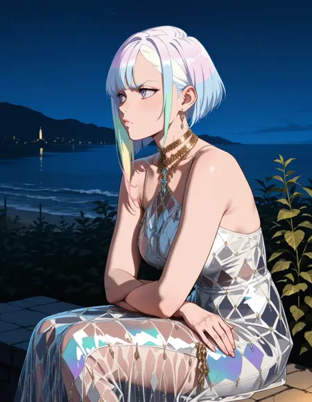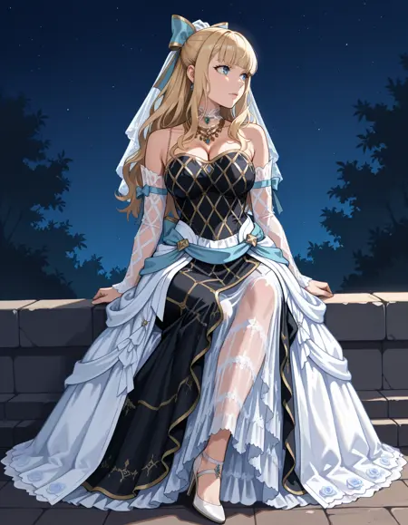 black dress, ornate clothing, fringed skirt, see-through dress, long dress, collared halterneck, spaghetti strap, gold necklace, sleeveless, loose_clothes