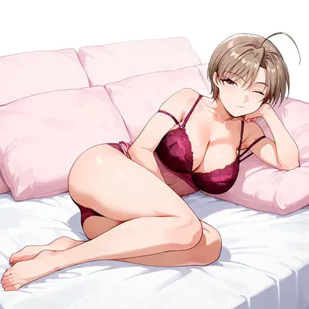 mitsune, solo, 1girl, ナース, パンツィーストッキング, 帽子, 短髪, 白いパンツィーストッキング, 茶色の髪, ナースキャップ, 目を閉じている