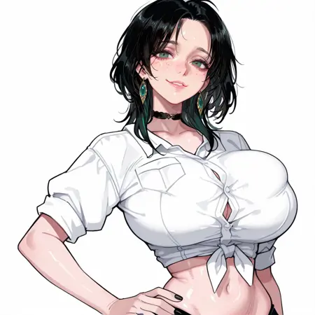 即使你并不想要凸出/四乳的效果,我的训练图像带来的副作用也使得这个 LoRA 在按钮紧绷、透视上衣、胸罩痕迹以及在未明确指定尺寸时作为整体尺寸增强器方面表现优异。