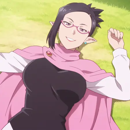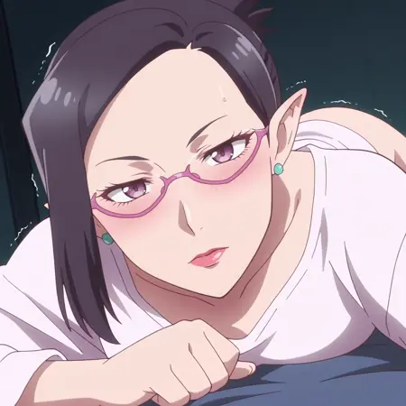 ARTGrenat,眼镜,黑发,尖耳,耳环,短发,紫眼,黑色镜框,