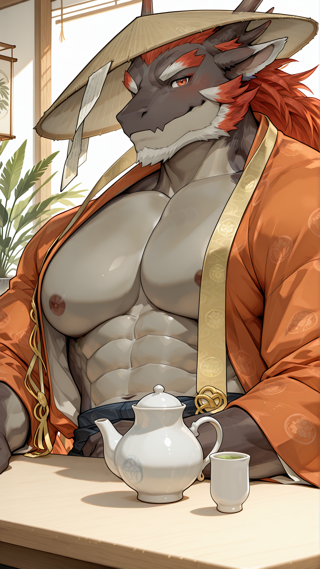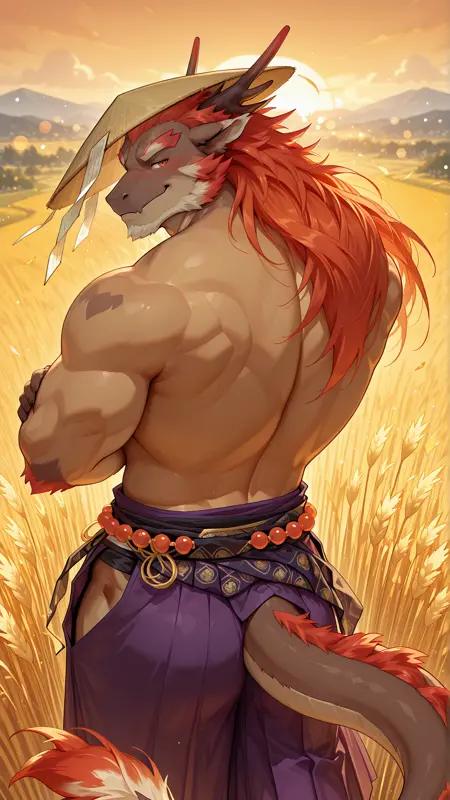 外見のプロンプト(オプション): ドラゴン、茶色の肌、赤い髪、ひげ、尾