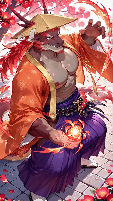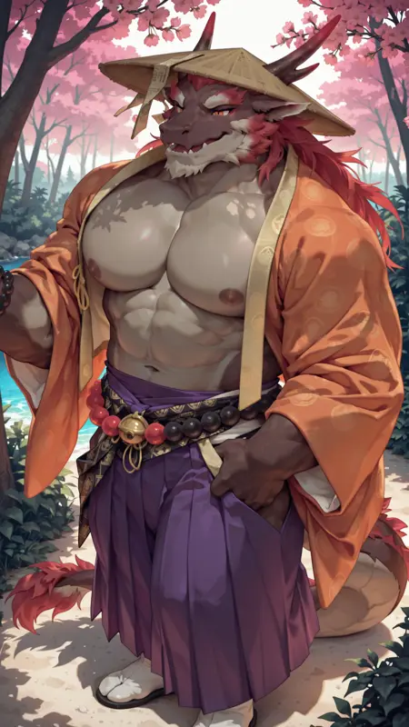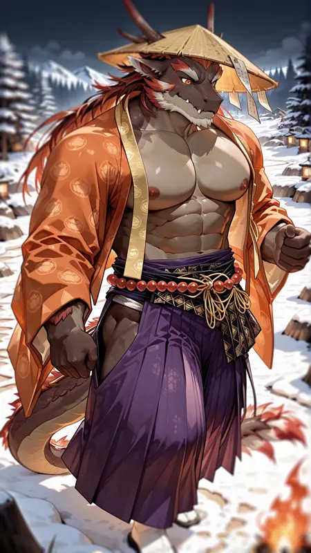 外貌提示词(可选):龙、棕色皮肤、红发、胡须、尾巴