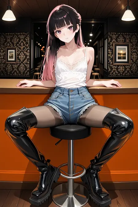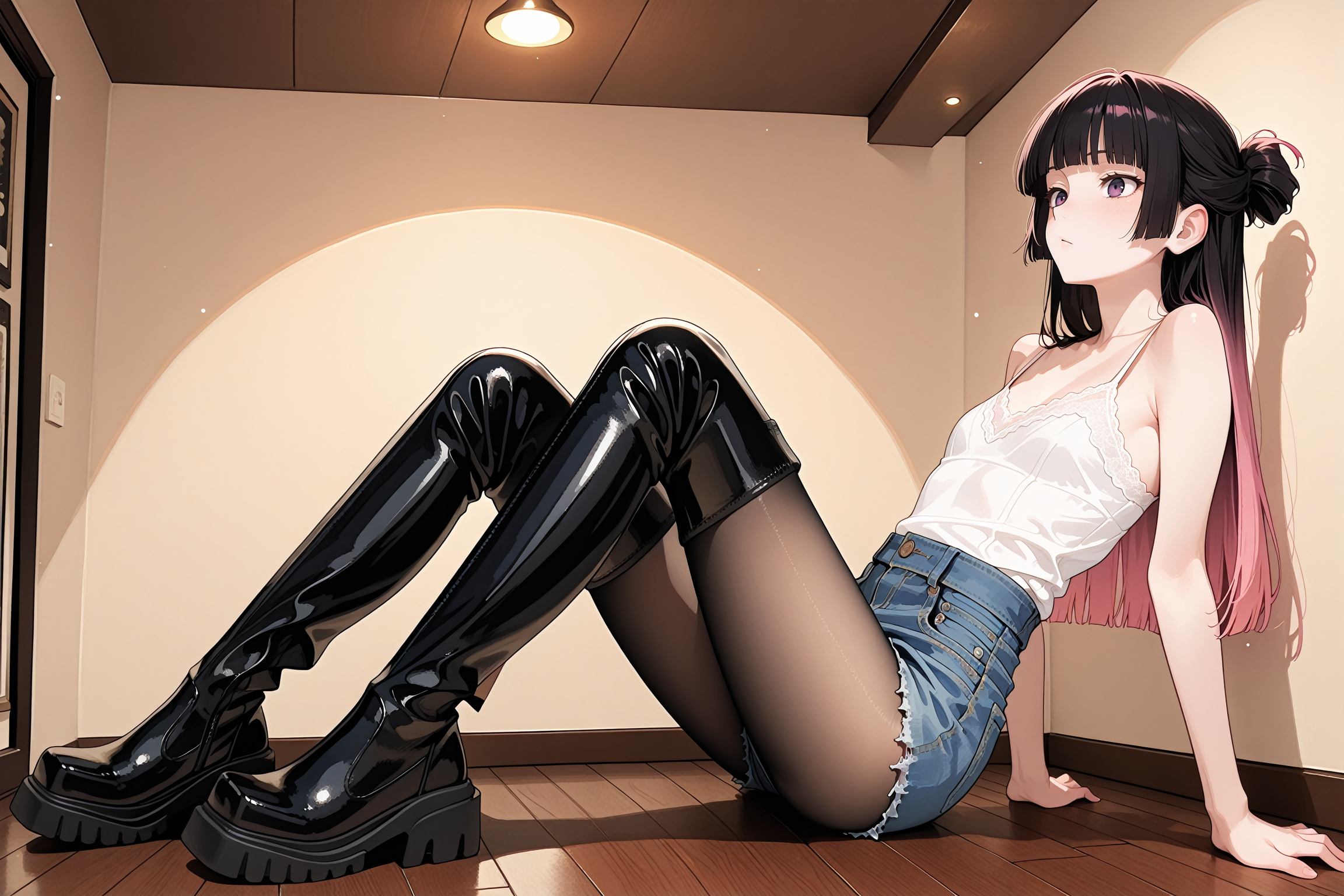 이 부츠는 매우 긴 허벅지까지 오는 롱부츠이기 때문에, 전신 입체적 자세를 원한다면 비율을 충분히 길게 설정하는 것이 좋습니다. 그렇지 않으면 다리가 줄어보여서 이상한 느낌이 나요.